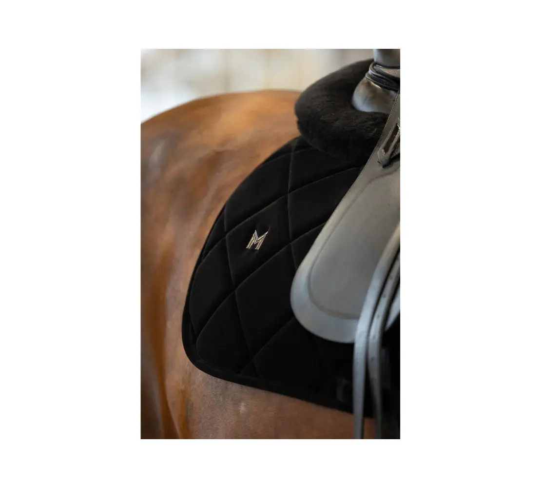 MaxiMilian 馬術汗墊 – Velvet 將優雅質感與專業性能完美結合。採用頂級天鵝絨布料製成,觸感柔滑、外觀高貴,無論是訓練或比賽皆能展現非凡氣勢。搭配同系列天鵝絨耳罩,打造一致且極具品味的騎乘風格。