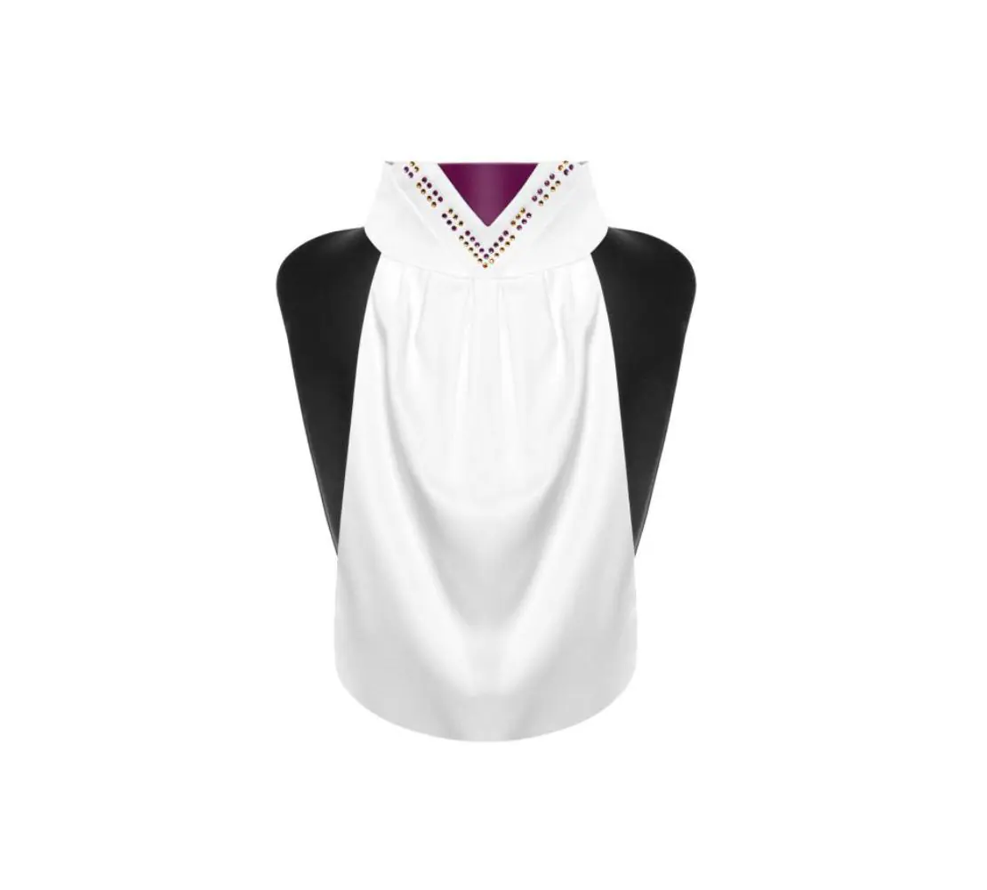 這款優雅的胸甲採用V型設計,搭配撞色布料和同色水鑽,與比賽服的顏色完美契合。獨特的內切式設計確保了穿著的舒適度。這款胸甲採用優質面料製成,背面配有魔鬼氈,既時尚又實用 優雅合身