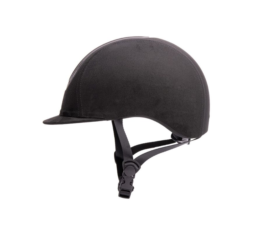馬術專用安全帽 Mirco 以絨面外殼為主體,並配有多處透氣孔設計,提供最佳通風效果,保持頭部乾爽。符合以下標準:CE VG1 01.040 2014-12。可拆卸、可清洗的內襯。還配有多個通風孔。