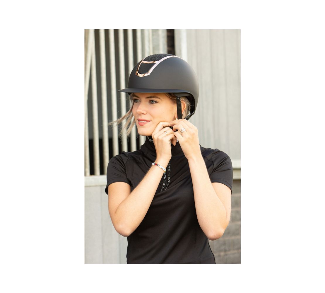 馬術專用安全帽 Mont,以啞光外殼為主體,以金屬線條勾勒框線並裝飾閃亮的水鑽於帽中心,更加耀眼奪目,搭配寬邊延伸的帽簷,增加了防雨、防曬的面積。 符合 CE VG1 01.040 2014-12 認證。具有可拆卸、可清洗的襯裡。透過旋鈕輕鬆調整。還配備了多個通風孔。 規格 S(53-55), M(56-58), L(59-61) 商品評價 目前沒有評價。 只有註冊並且購買過商品的顧客才能撰寫評價。