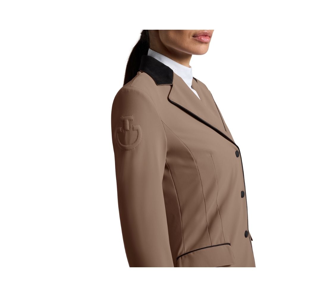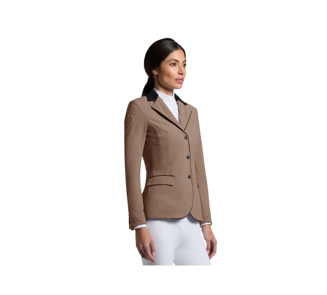 俐落簡約的外觀,穿上後呈現著優雅、經典的氣息。右側手臂上有CT Logo標誌。三顆鈕扣的下方配有拉鍊。這款外套還具有以下特點:抗菌、透氣、防紫外線、快速乾燥、防潑水。可適用於馬術比賽S2等級以下,與所有障礙比賽等級。