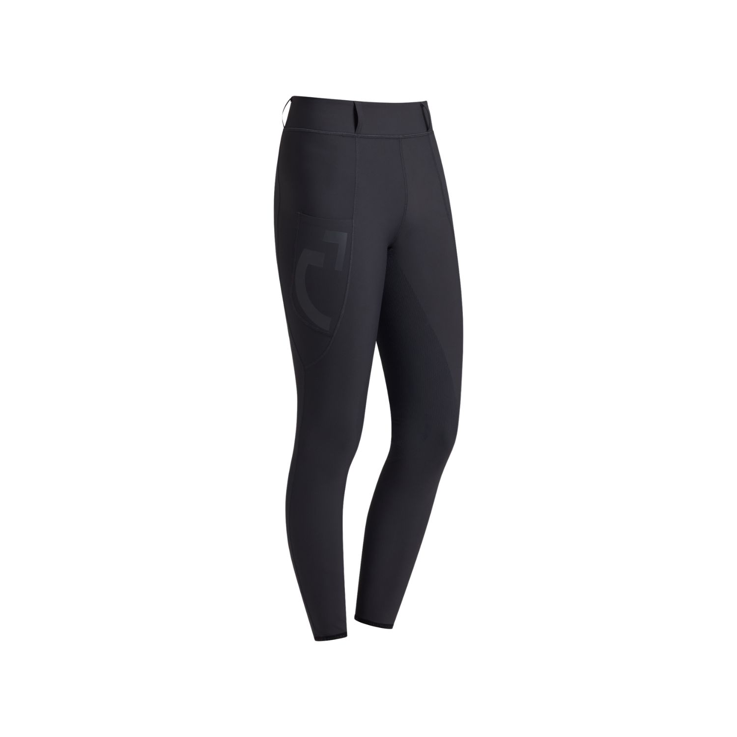 Cavalleria Toscana 女款全皮馬褲專為提升騎乘穩定性與靈活度而設計。採用高彈性技術布料,確保最佳透氣性與舒適度。全皮透明防滑設計覆蓋整個內側腿部,提高馬背上的抓地力。口袋側邊壓紋 CT 標誌增添時尚感,彈性褲管確保靴內貼合度。這款馬褲兼具高機能與現代設計,適合日常訓練與比賽穿著。