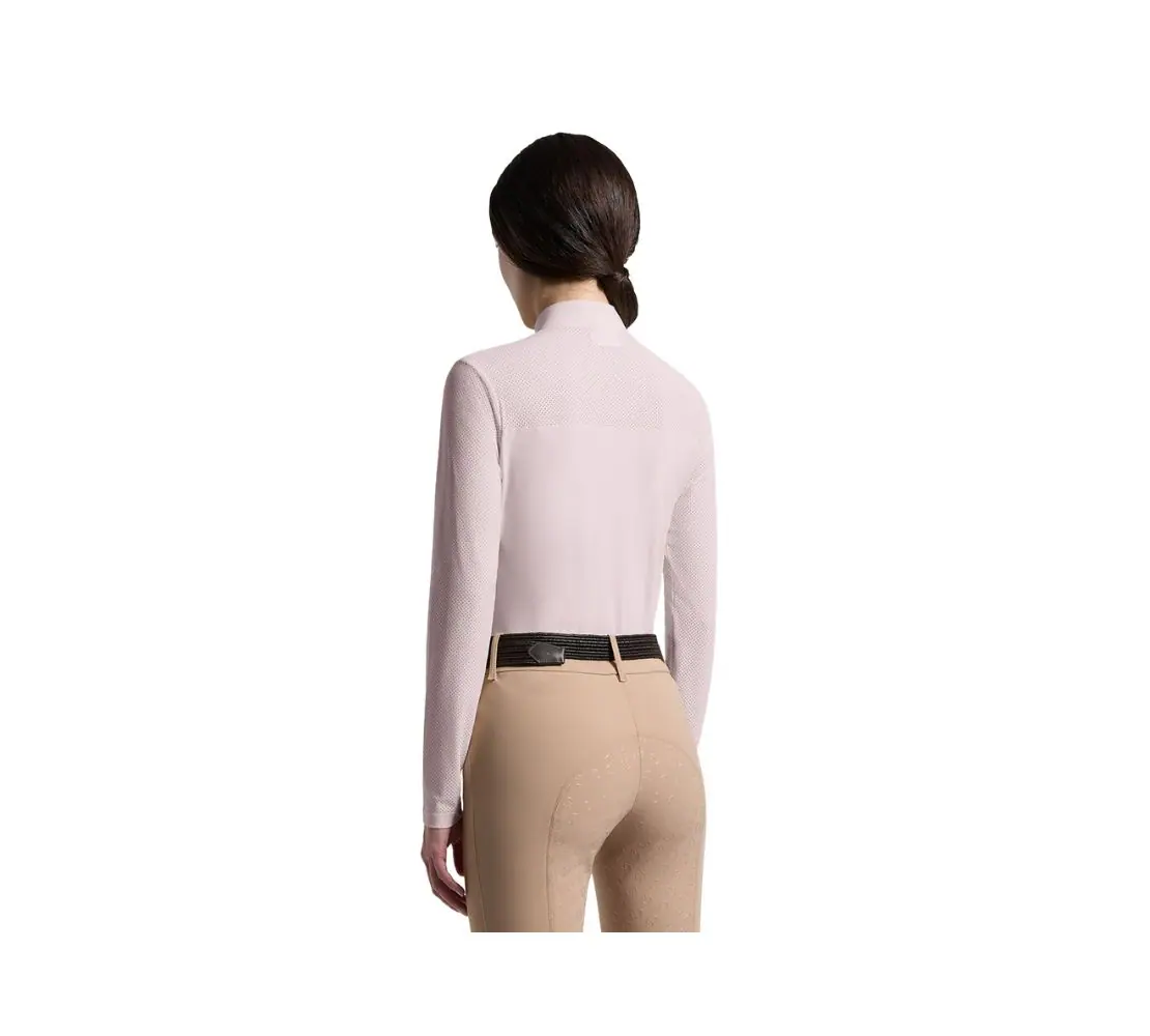 這款 Cavalleria Toscana 長袖訓練 Polo 專為提升騎乘與訓練表現而打造。選用高品質 Eurojersey 機能面料,帶來卓越舒適度與優異濕氣管理能力。前身、後背及袖部 strategically 設計透氣打孔拼接,提供定向且高效的通風效果。高領設計符合運動需求,搭配半開拉鍊與 CT 標誌拉頭,兼具實用與細節質感。胸前熱壓品牌標誌展現現代動感風格,完美融合技術性能與品牌優雅設計