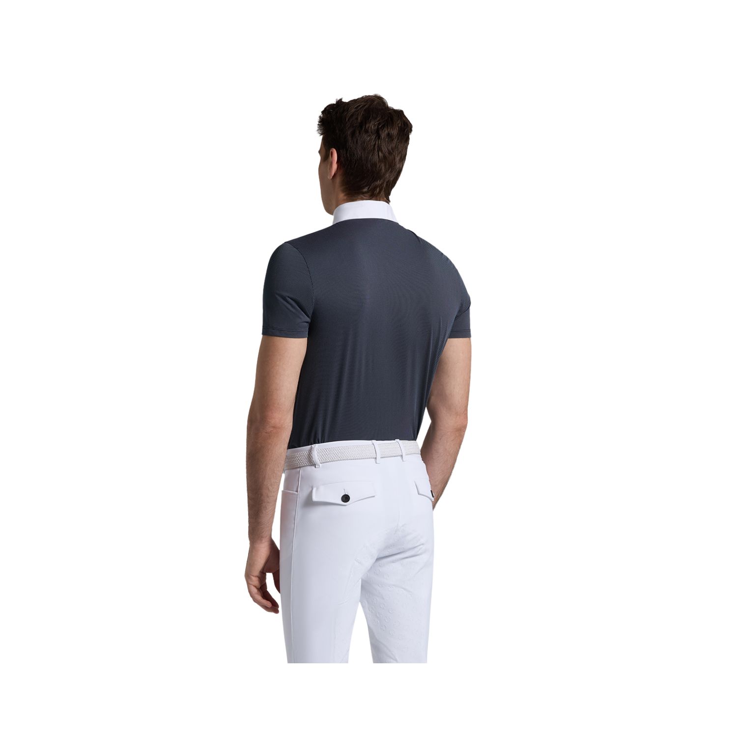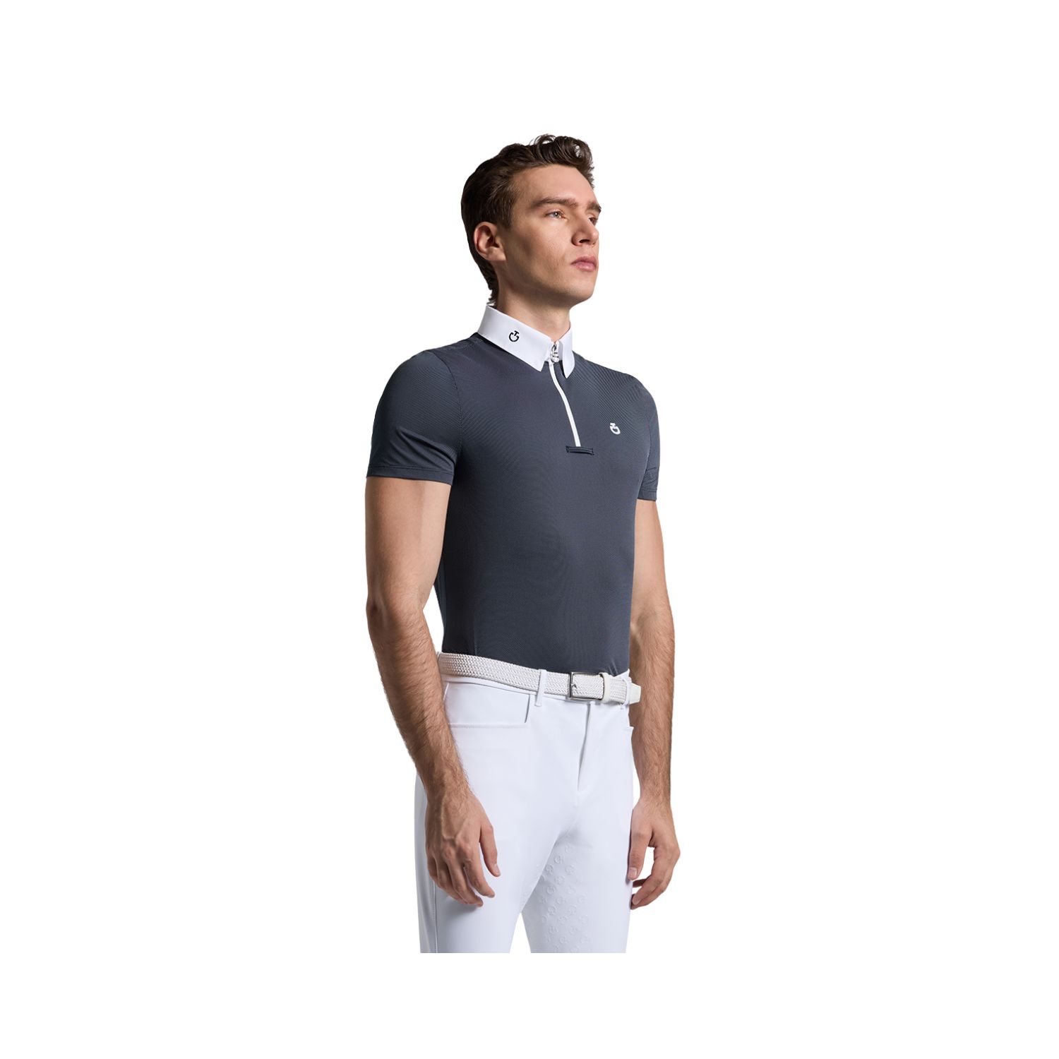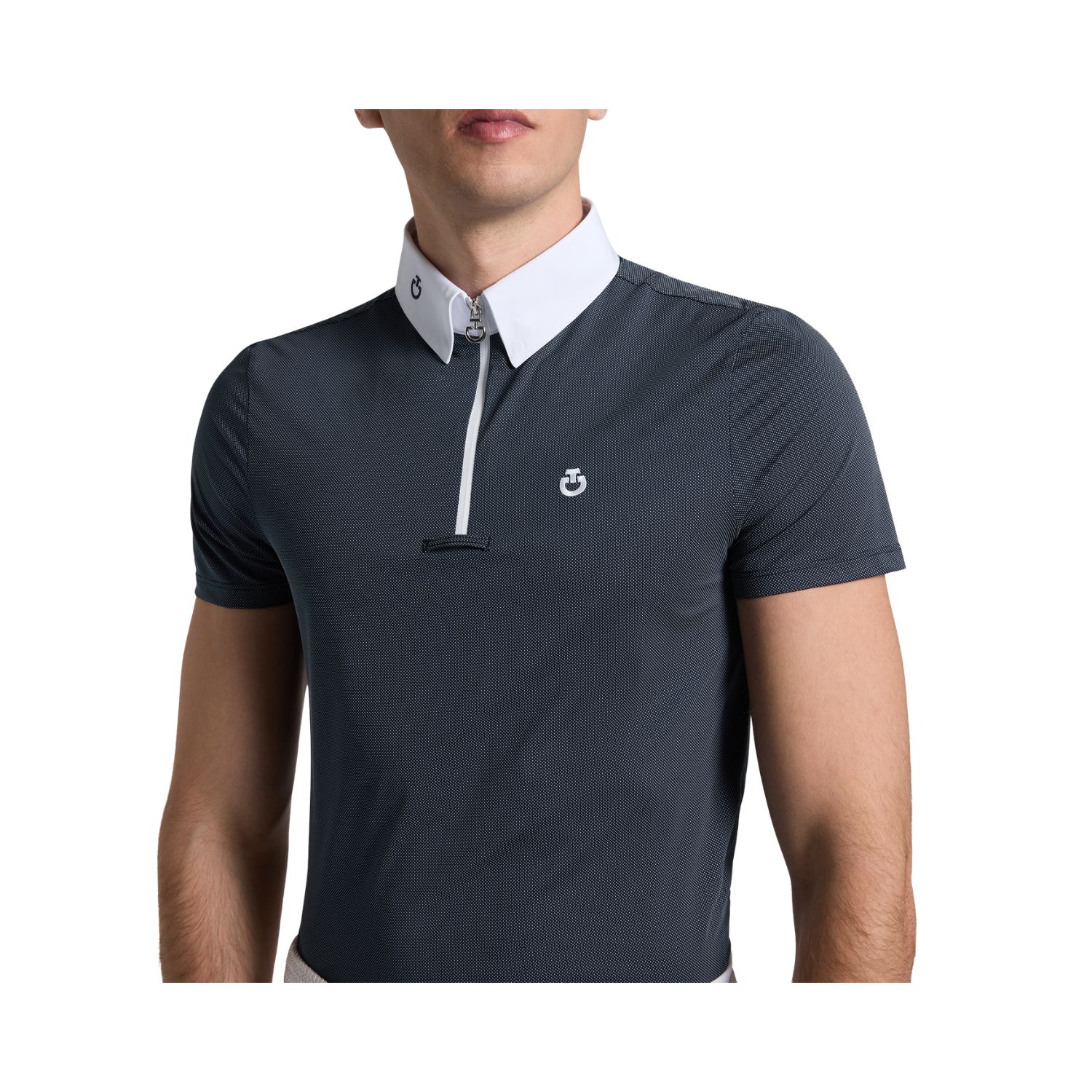 此款 Cavalleria Toscana 男士短袖比賽上衣,專為賽場需求打造,結合正式外觀與高機能布料。採用高性能歐式針織材質,具備優異透氣性、彈性與速乾效果,確保比賽過程中維持舒適體感。