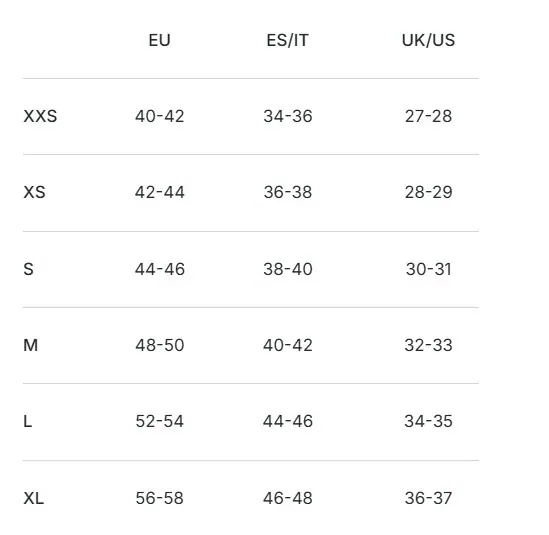 先進的技術面料,具有 360° 拉伸功能 精心設計的結構,符合人體工學的接縫 量身定制,舒適安全 方便的手機口袋配有隱藏拉鍊,可在騎乘時確保手機安全 實用的前後口袋 小腿採用超柔軟彈性布料,帶來最大舒適度 腰帶內側有矽膠條,可防止上衣向上滑動 有膝蓋型和全握型可供選擇 漿紗: 模特兒身高 185 厘米,穿著 M 碼 規格 XS(EU42-44), S(EU44-46), M(EU48-50), L(EU52-54)