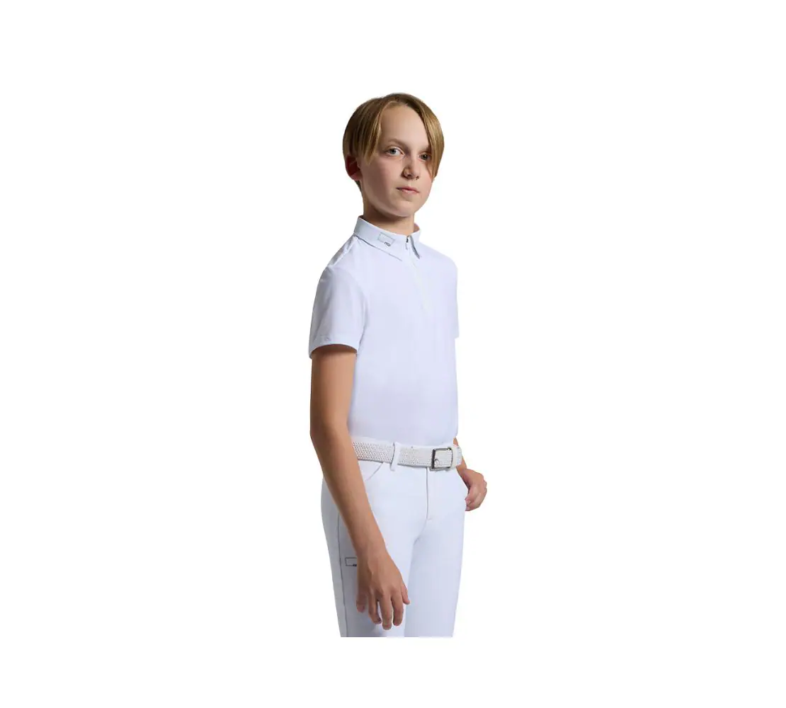 這款 Rider’s Gene 男童競賽上衣結合性能與造型。輕盈透氣機能面料提供舒適與乾爽體驗。立領與前半開拉鍊設計帶來實用貼合效果,人體工學剪裁確保活動自由度,在賽場上展現專業且俐落的騎乘形象