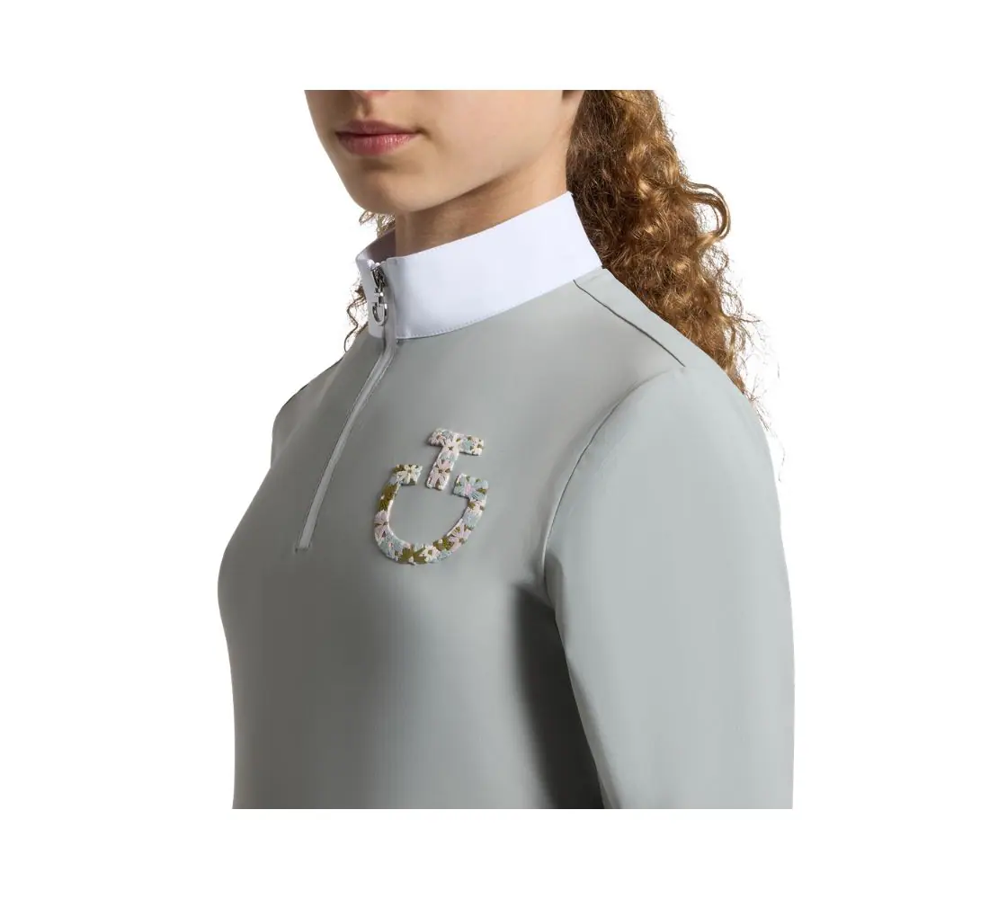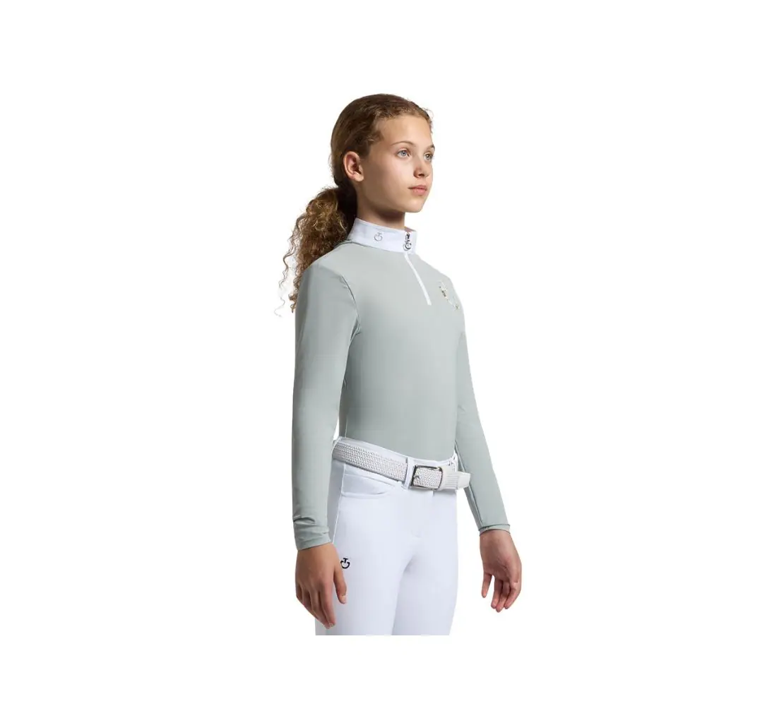 此款 Cavalleria Toscana 女童長袖比賽上衣,專為賽場需求設計,兼顧專業外觀與舒適機能。採用高性能科技針織布料,具備良好彈性與透氣性,能有效調節體感溫度,適合作為比賽外套內層穿著。
